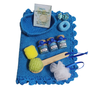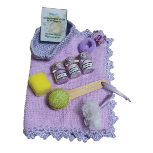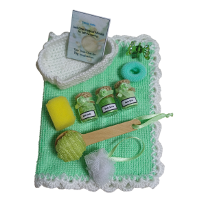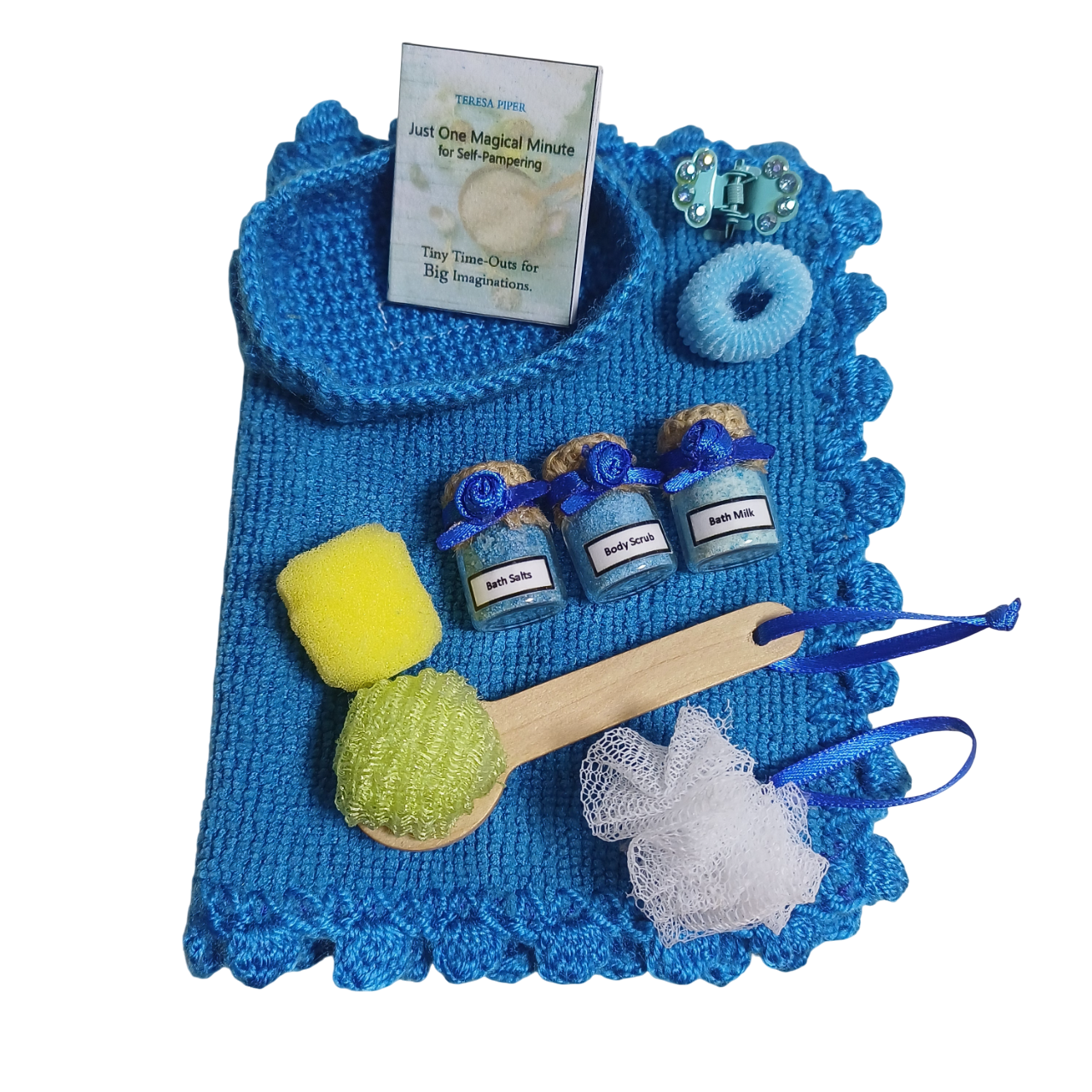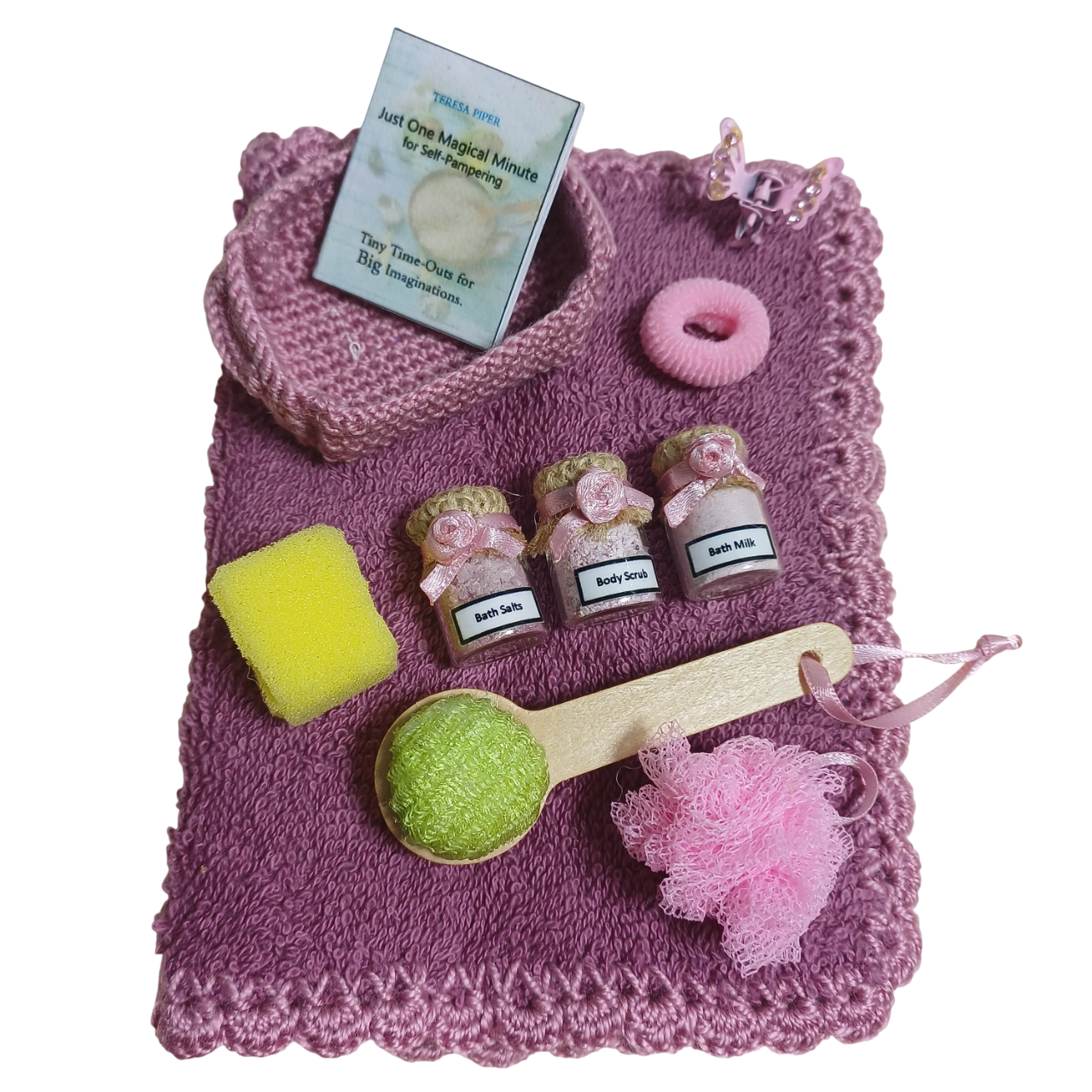 A dreamy bath-time set for tiny people who love a good pamper day — beautifully packed in a matching basket, handmade to bring calm and colour to your tiny spa moments. Set includes:
